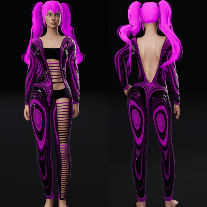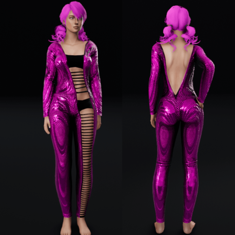 Metal Pink Not Emissive - Bodysuit with Ripped Front