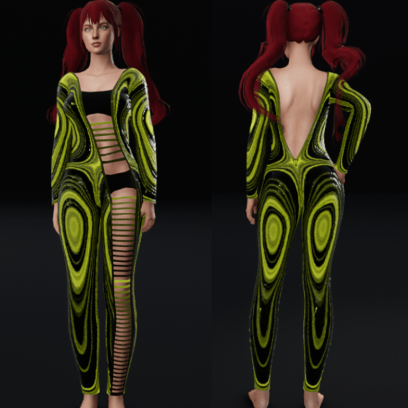 Emissive Bodysuit with Ripped Front - Green