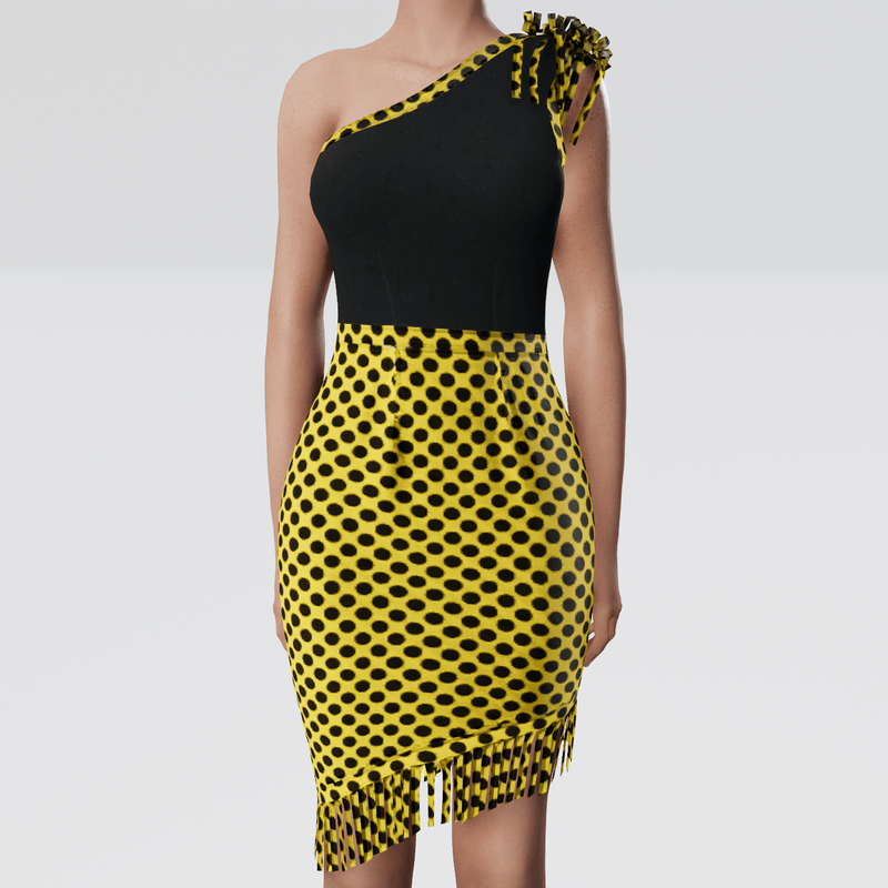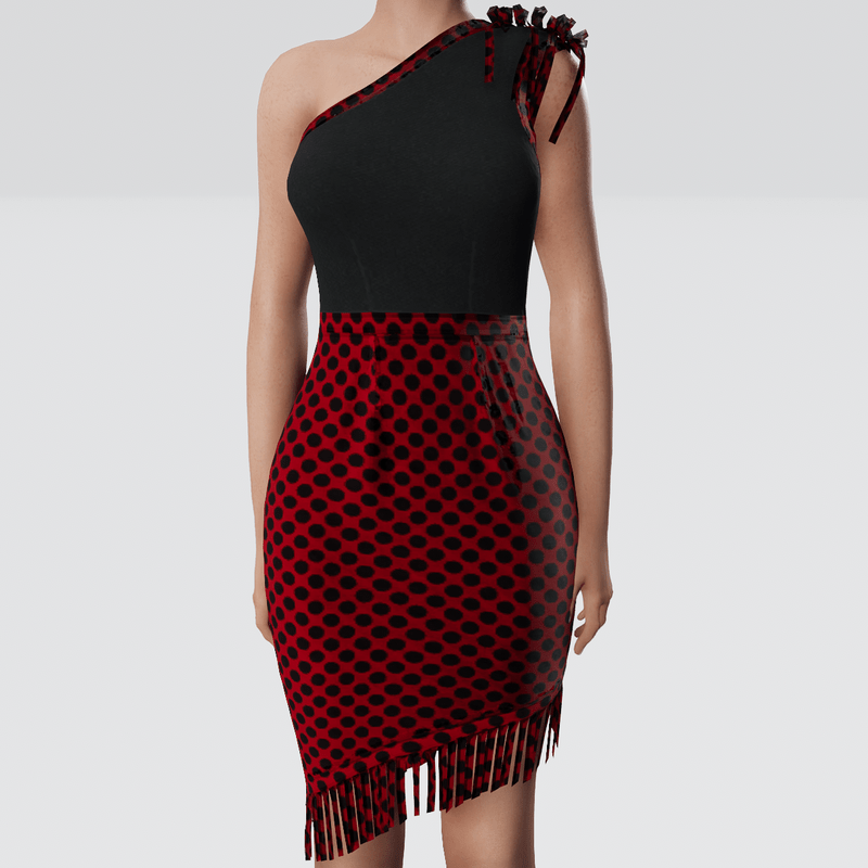 Polka Dot Fringe Bottom Dress - Medium Violet Red