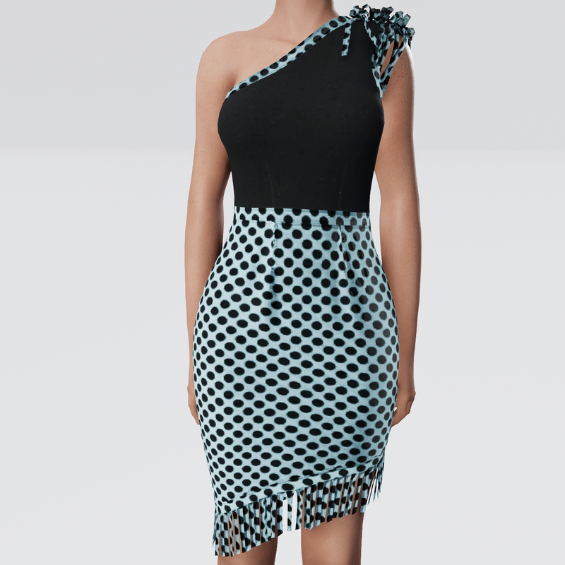 Polka Dot Fringe Bottom Dress - Powder Blue