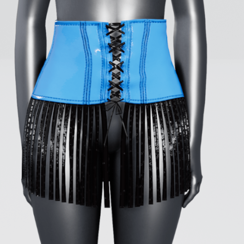 Plastic High Waist Fringe Skirt - Blue