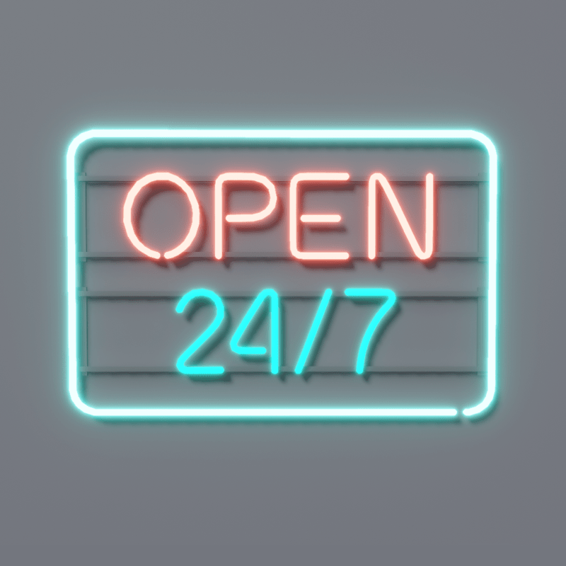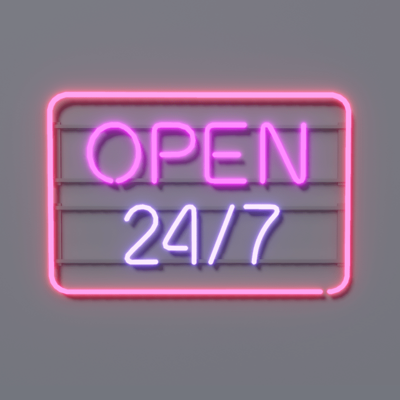 Open 24/7 Sign Neon - Teal/ Warm Red