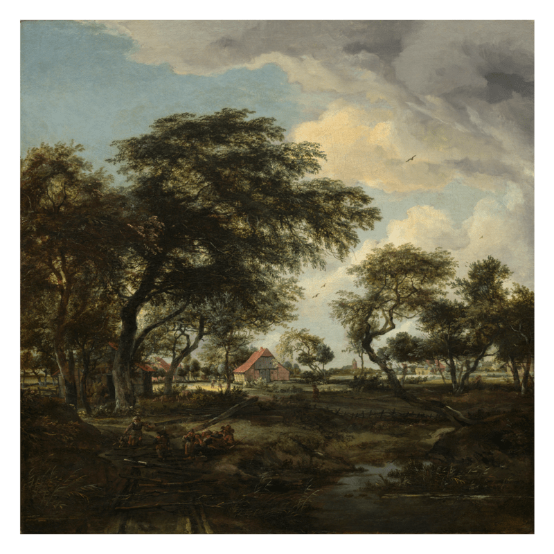 *Public Domain Arts* A Farm in the Sunlight, Meindert Hobbema - 1668