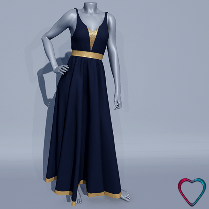Empire Waist Evening Dress - Blue and Gold
