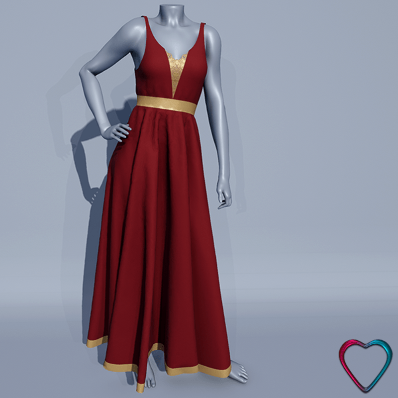 Empire Waist Evening Dress - Red and Gold
