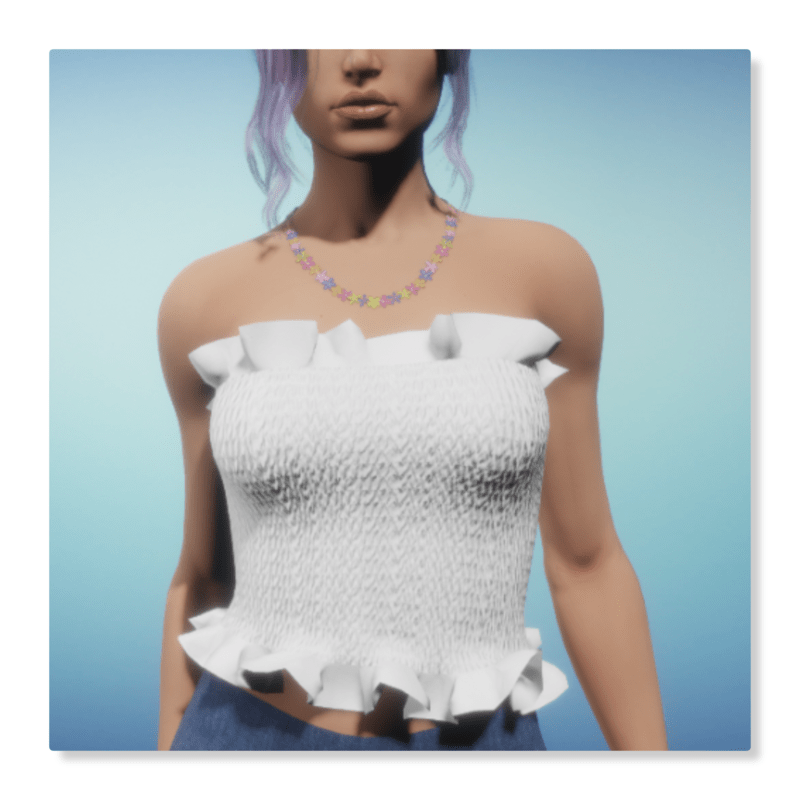Shirred Tube Top with Ruffles - White