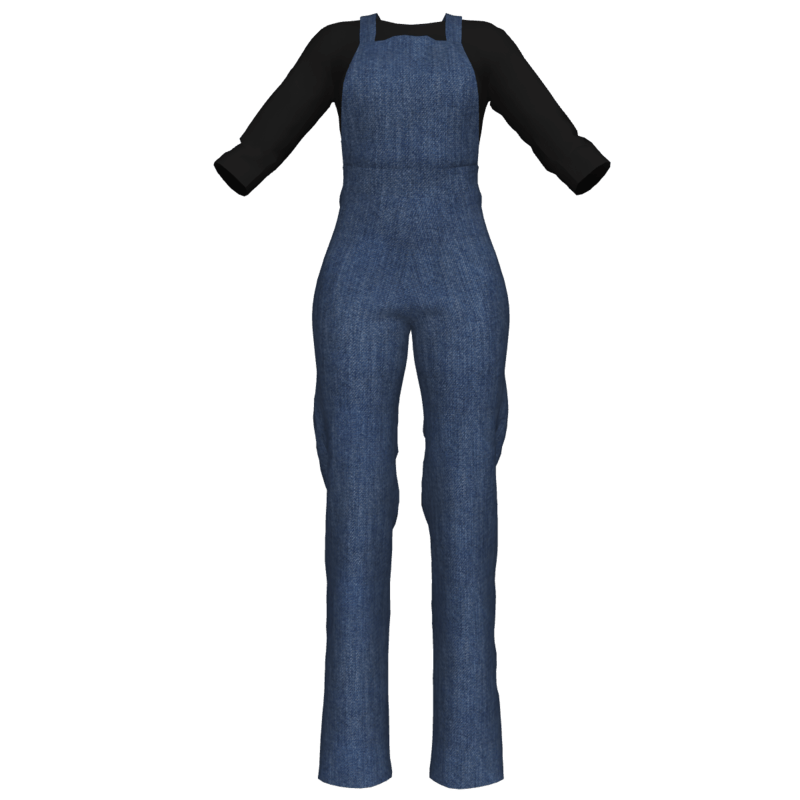 Bibbed Denim Overalls w Black Shirt