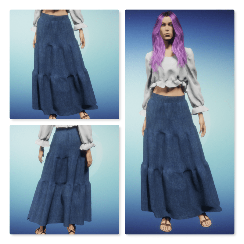 Long Denim Tiered Skirt