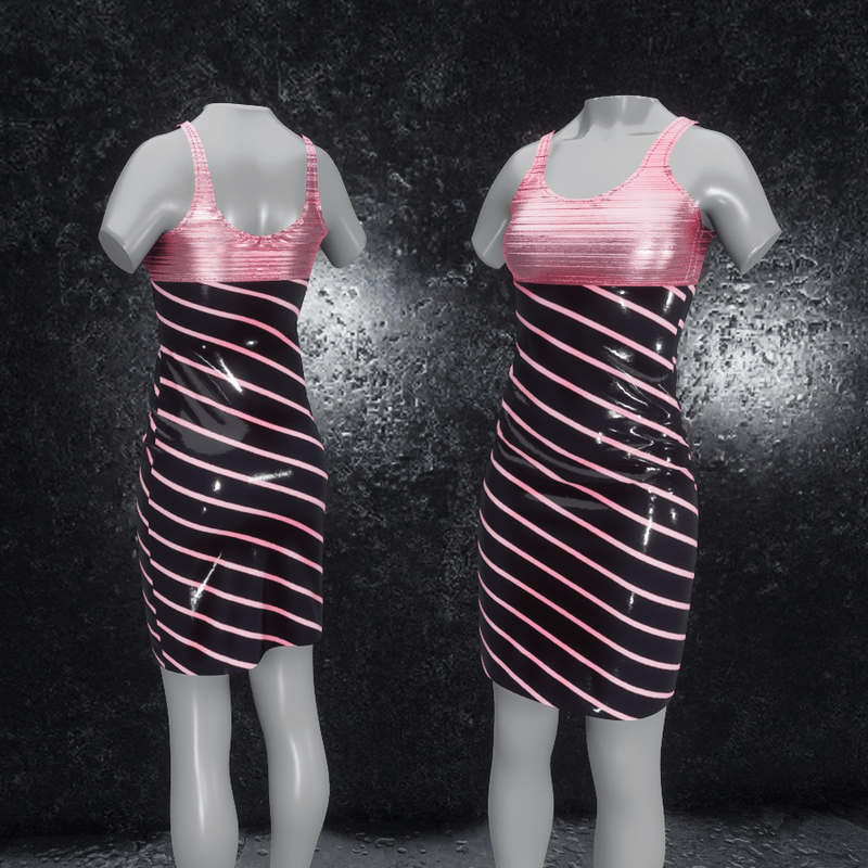 Dress Elly latex stripes pink silver