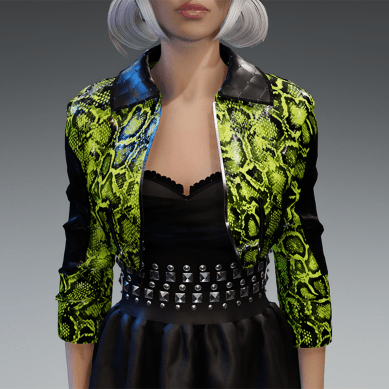 Short Rock'n'Roll Jacket in Snake Yellow Green