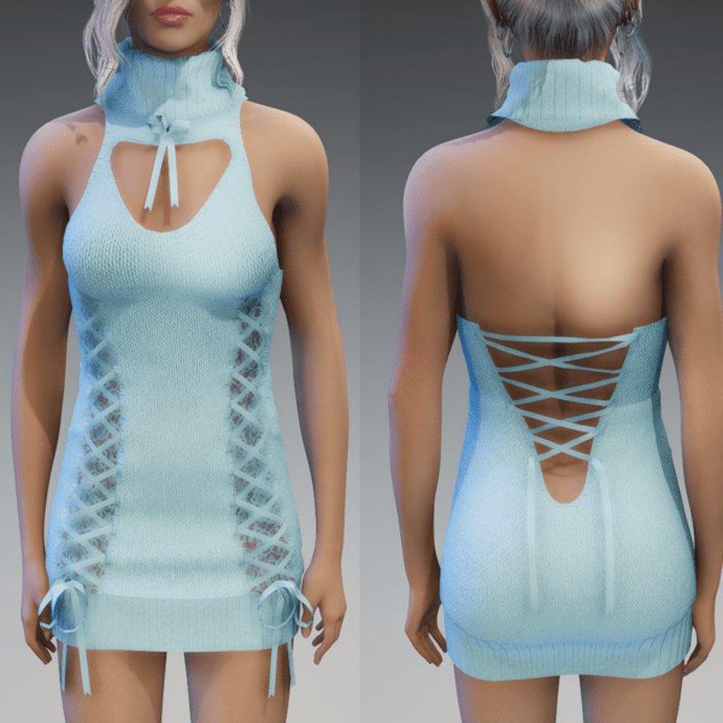 Wool Mini Dress in Pastel Blue