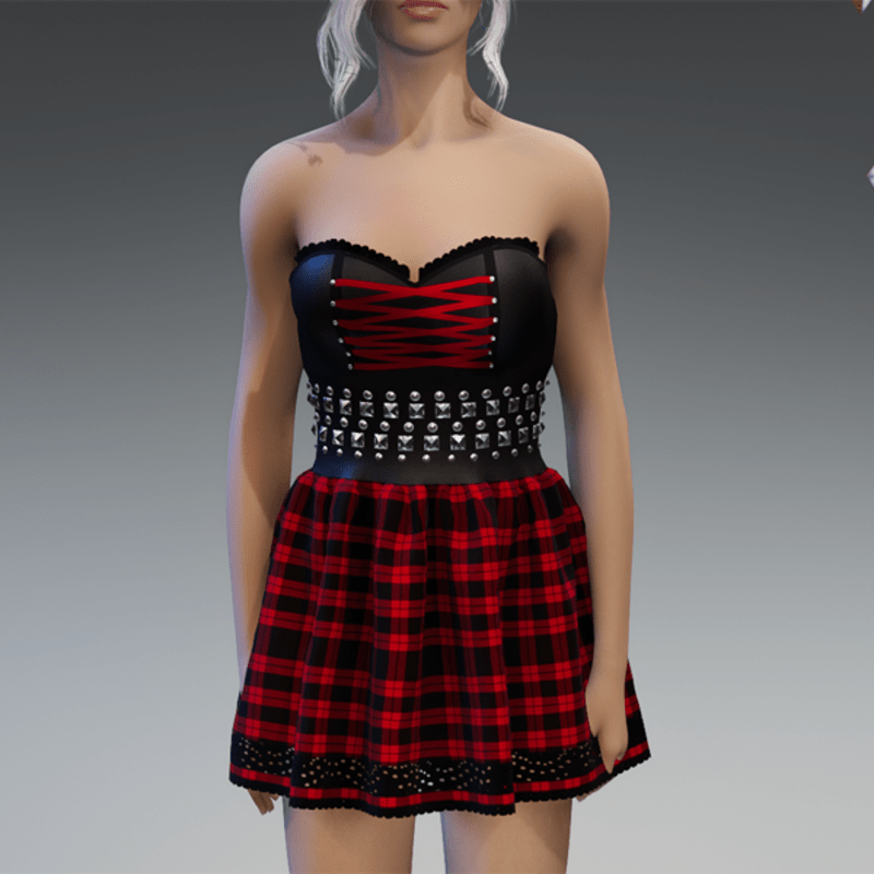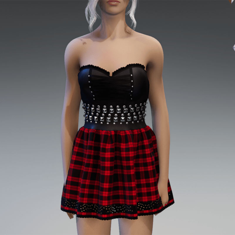 Punky Mini Dress Black & Red Checkered V2