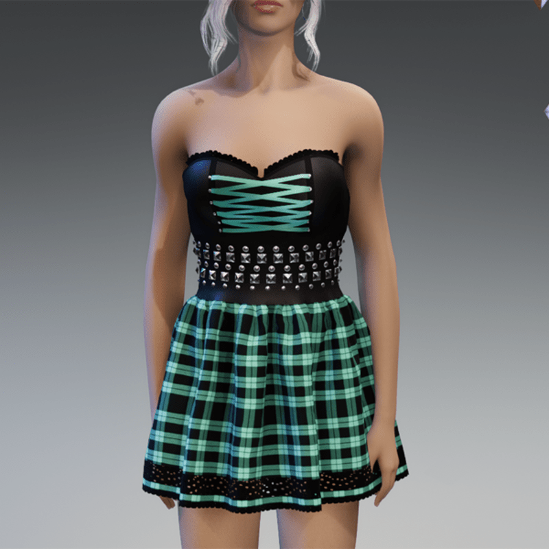 Punky Mini Dress Black & Mint Checkered