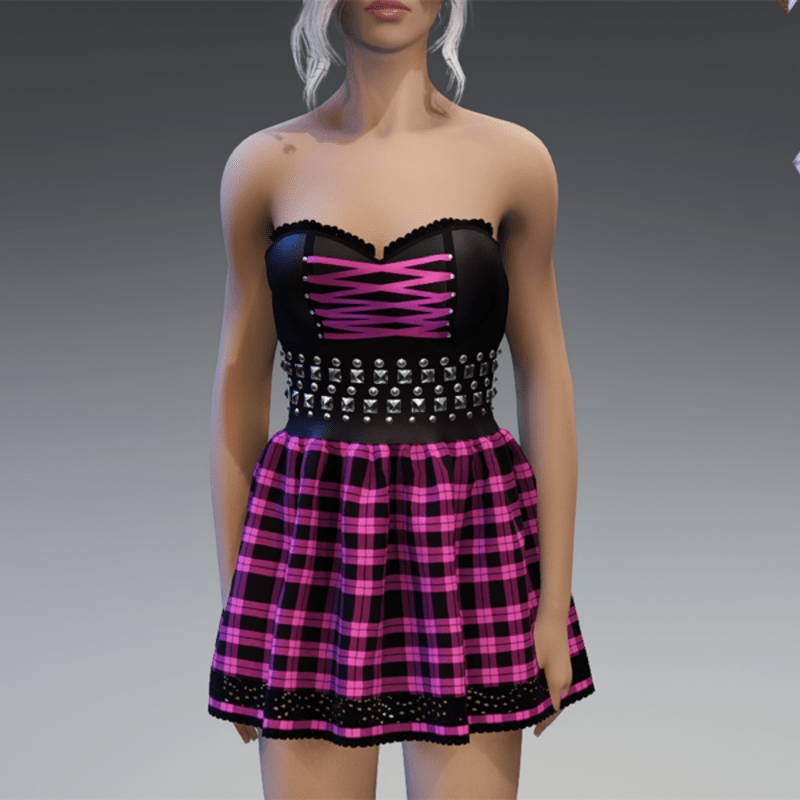 Punky Mini Dress Black & Pink Checkered