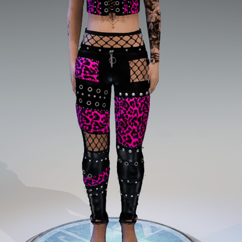 Ripped Leather Pants with Rivetsbelt Pastel Pink
