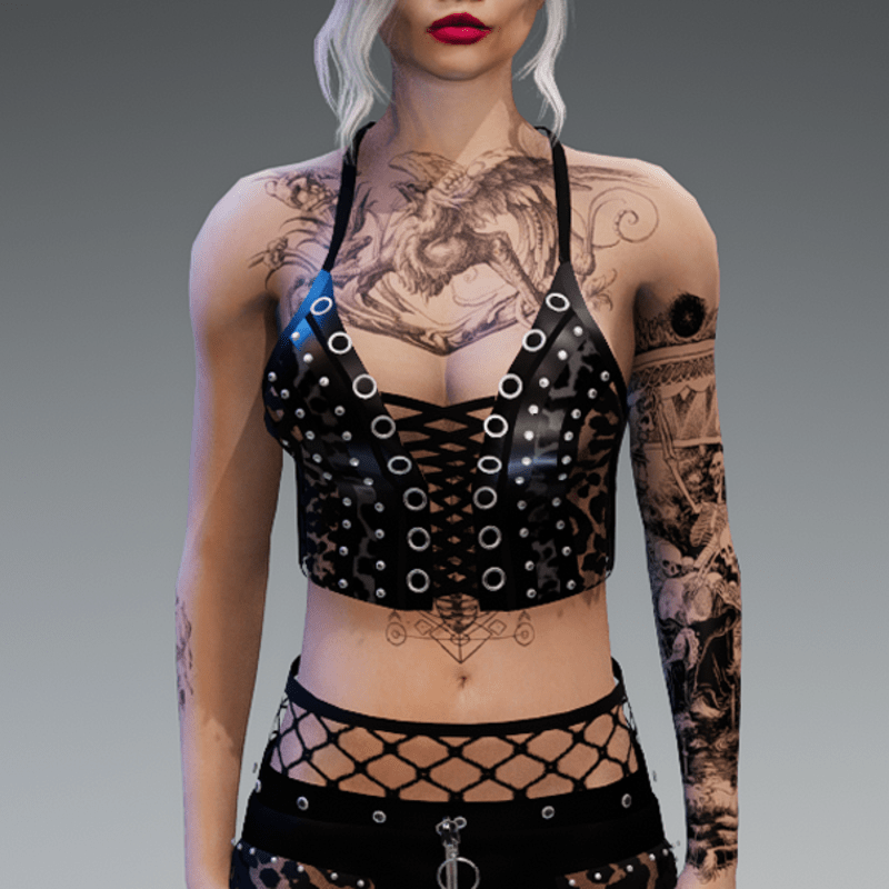 Ripped Leather Pants with Rivetsbelt Pastel Blue