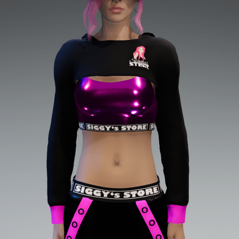 Black Siggys Store Hoodie with Metallic Pink Top