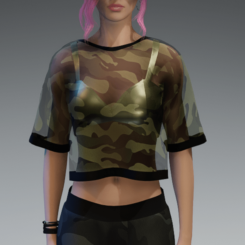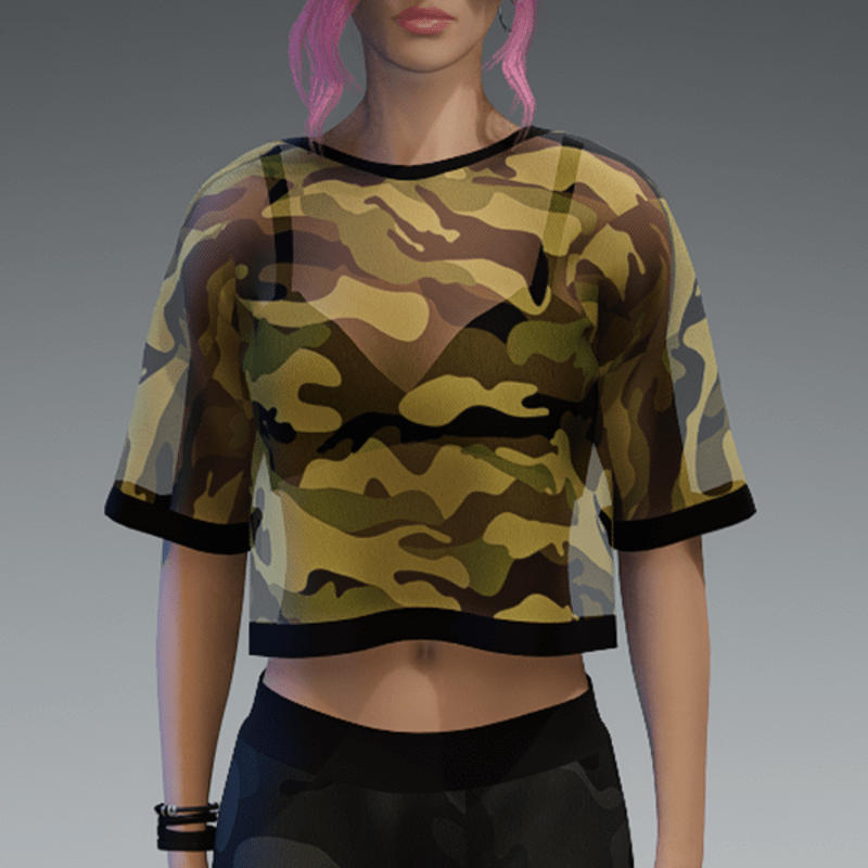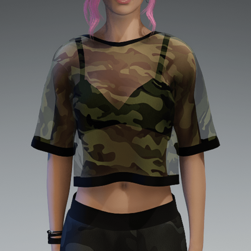 Transparent Green Camo Shirt with Black Bikini Top