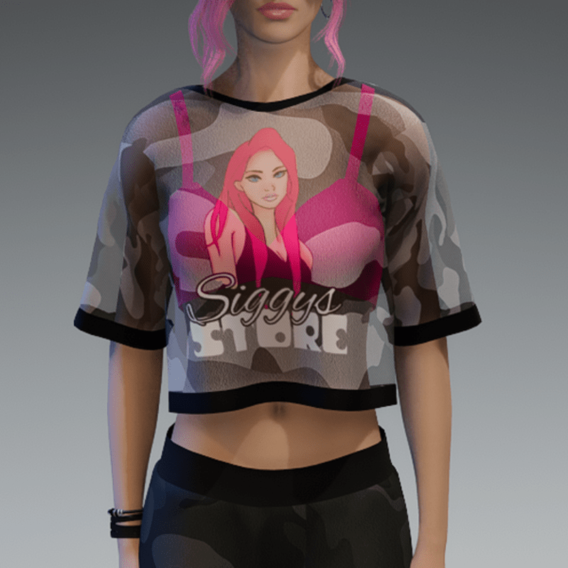 Transparent Camouflage 'Siggys Store' Shirt with Bikini Top