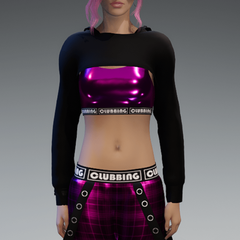 Black Clubbing Hoodie with Metallic Pink Top