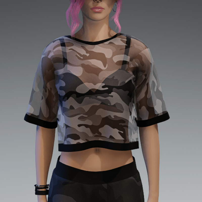 Transparent Gray Camo Shirt with Black Bikini Top