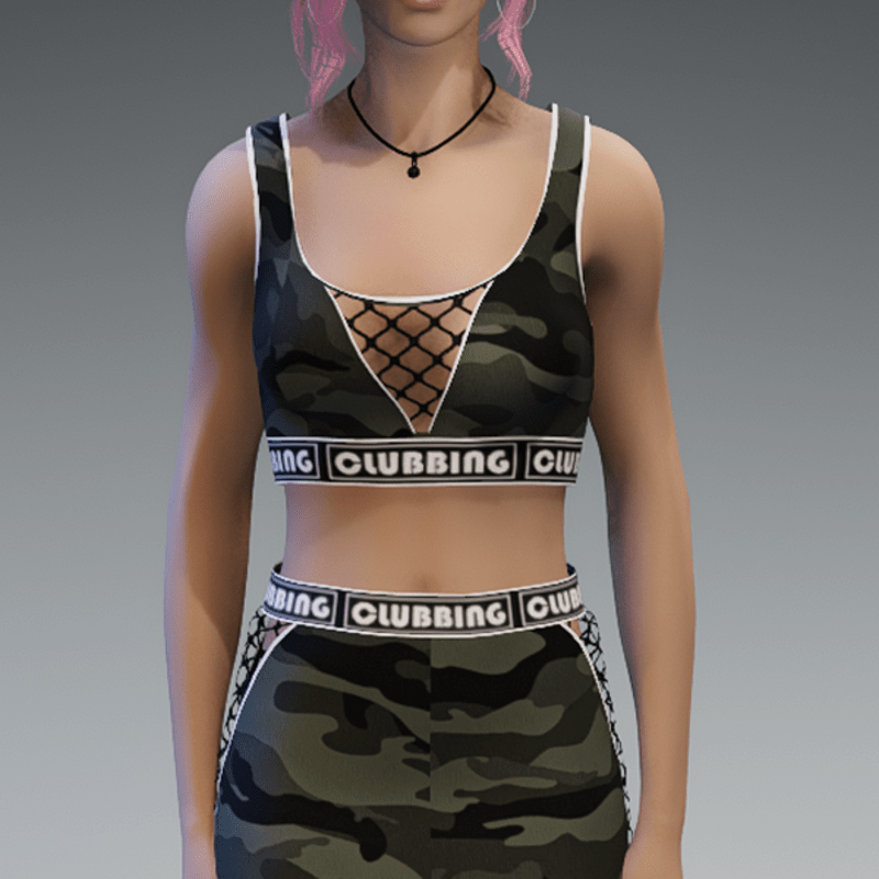 Clubbing Top /w Fishnet Application Camouflage Tropic