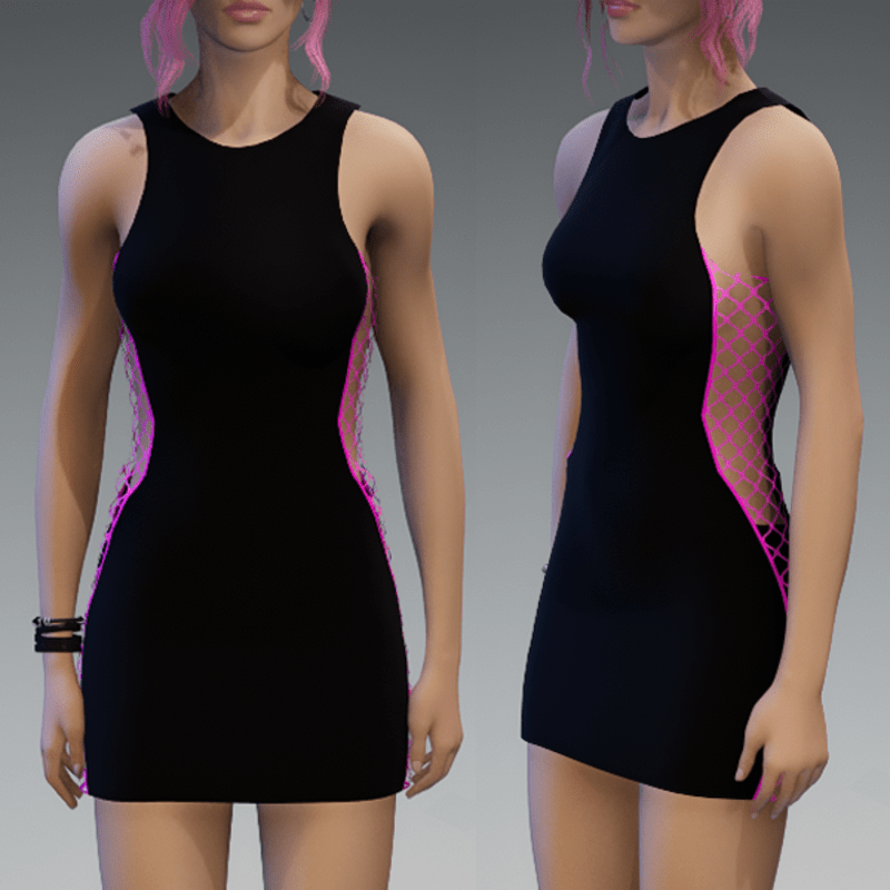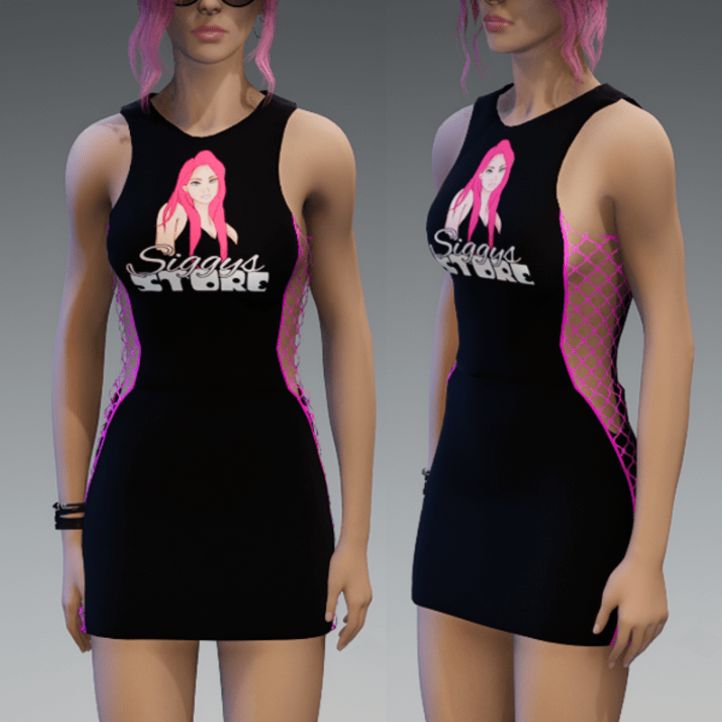 Black & Pink 'Siggys Store' Party Dress with Fishnet