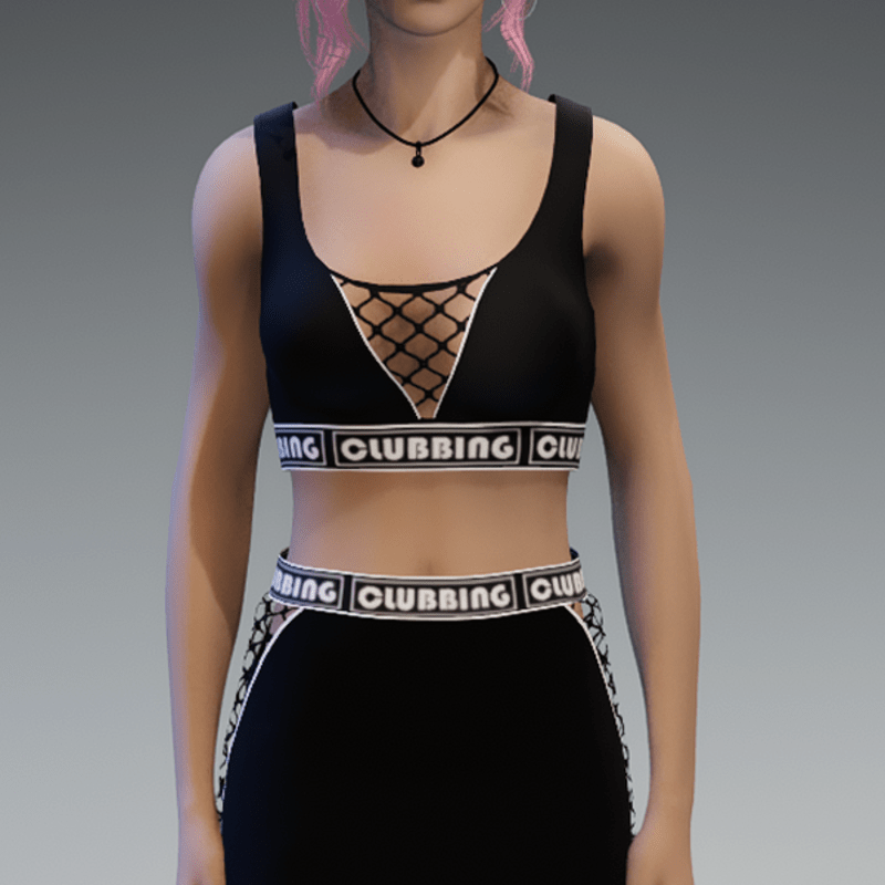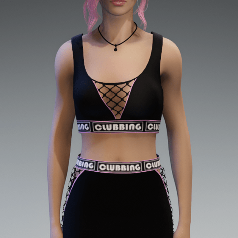 Clubbing Top /w Fishnet Application Black & Soft Pink
