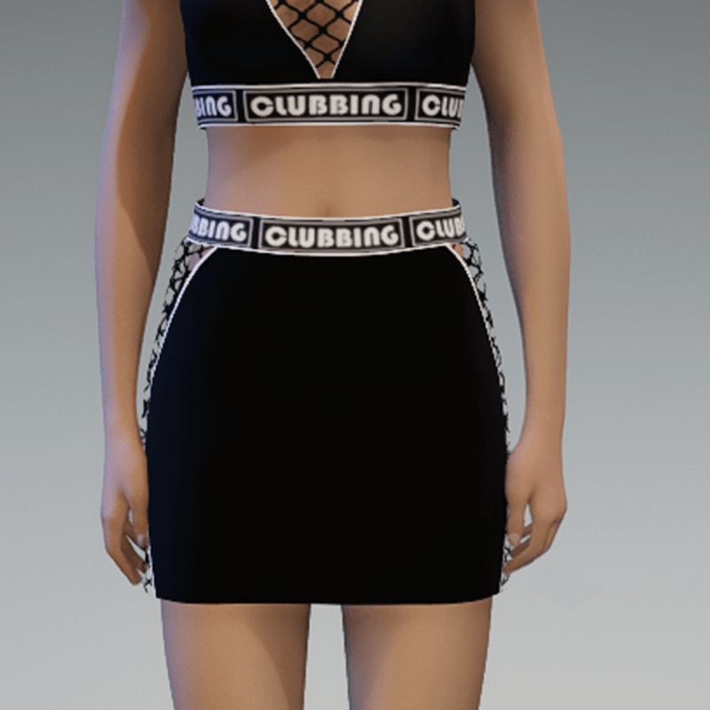 Clubbing Skirt /w Fishnet Application Black & Soft Pink