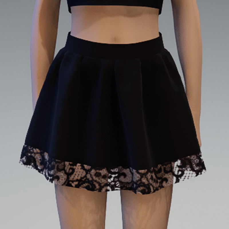 Black Mini "Flutter" Skirt with Lace Application