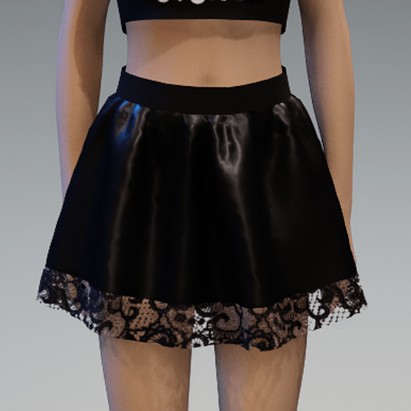 Black Shiny Mini "Flutter" Skirt with Lace Application