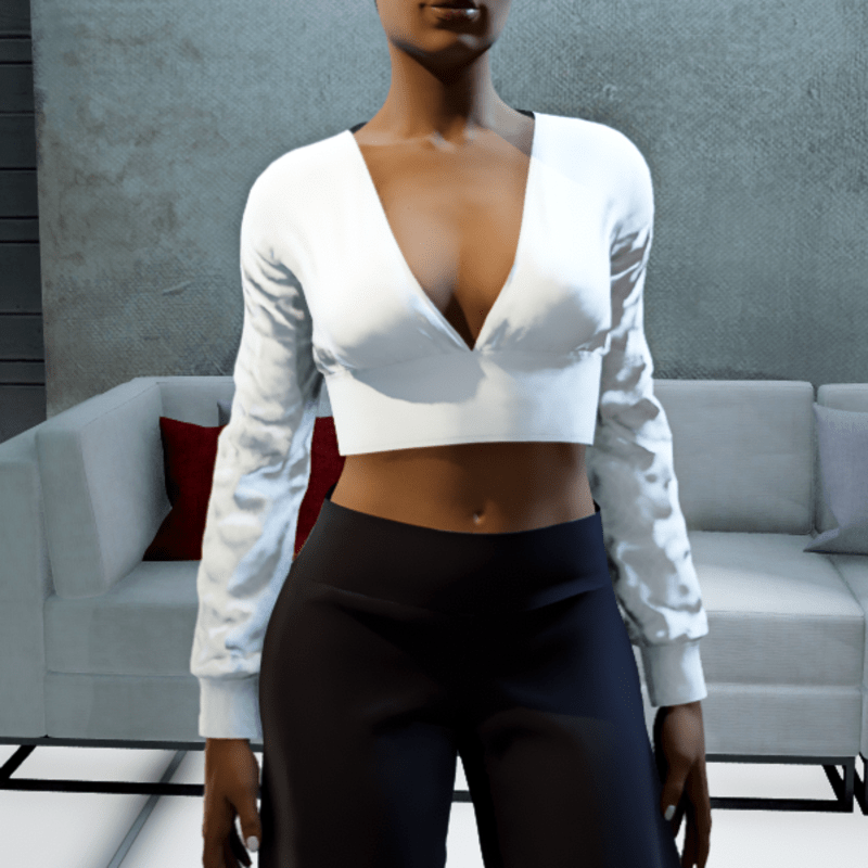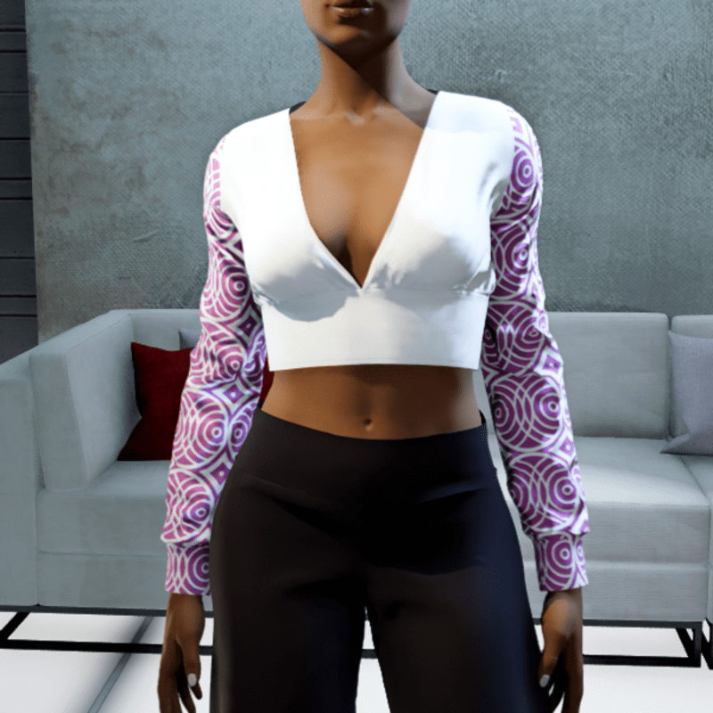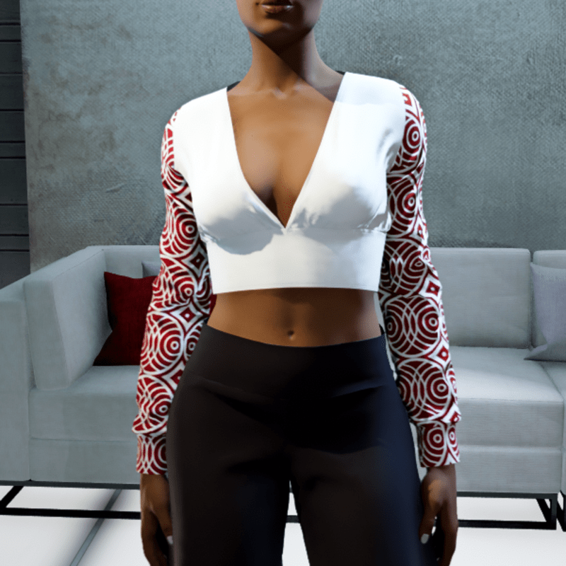 Cropped V-neck Blouse - White Circles
