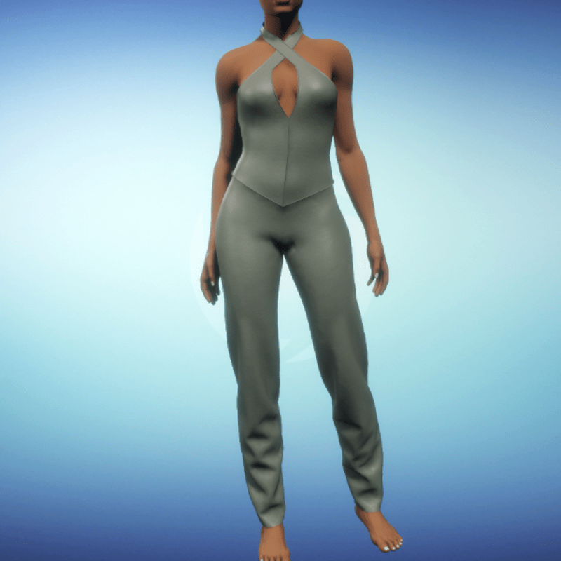 Split Halter Pantsuit - Pewter Leather