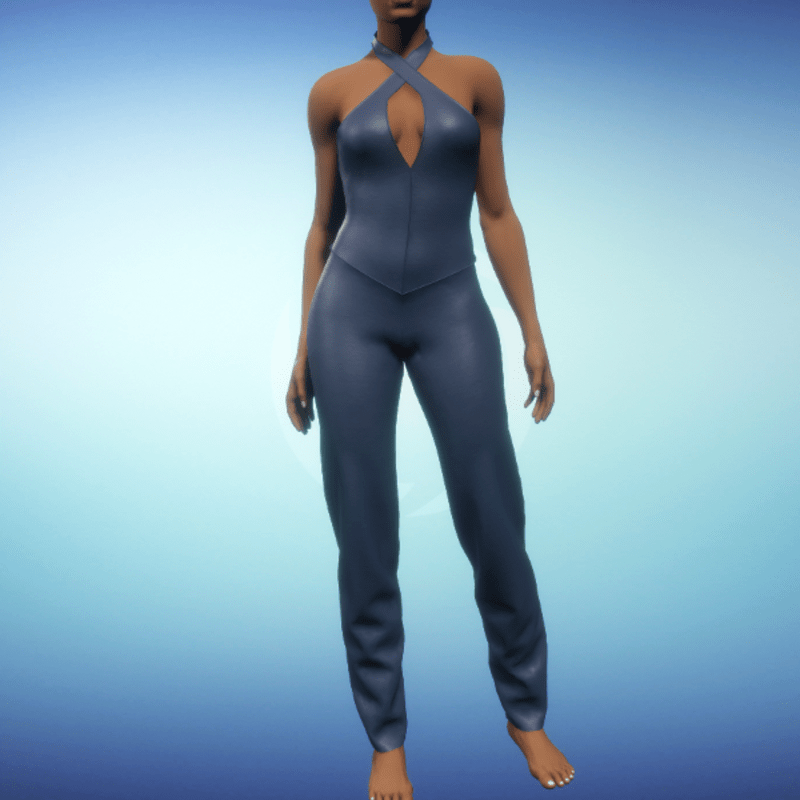 Split Halter Pantsuit - Blue Leather