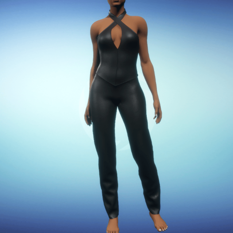 Split Halter Pantsuit - Black Leather