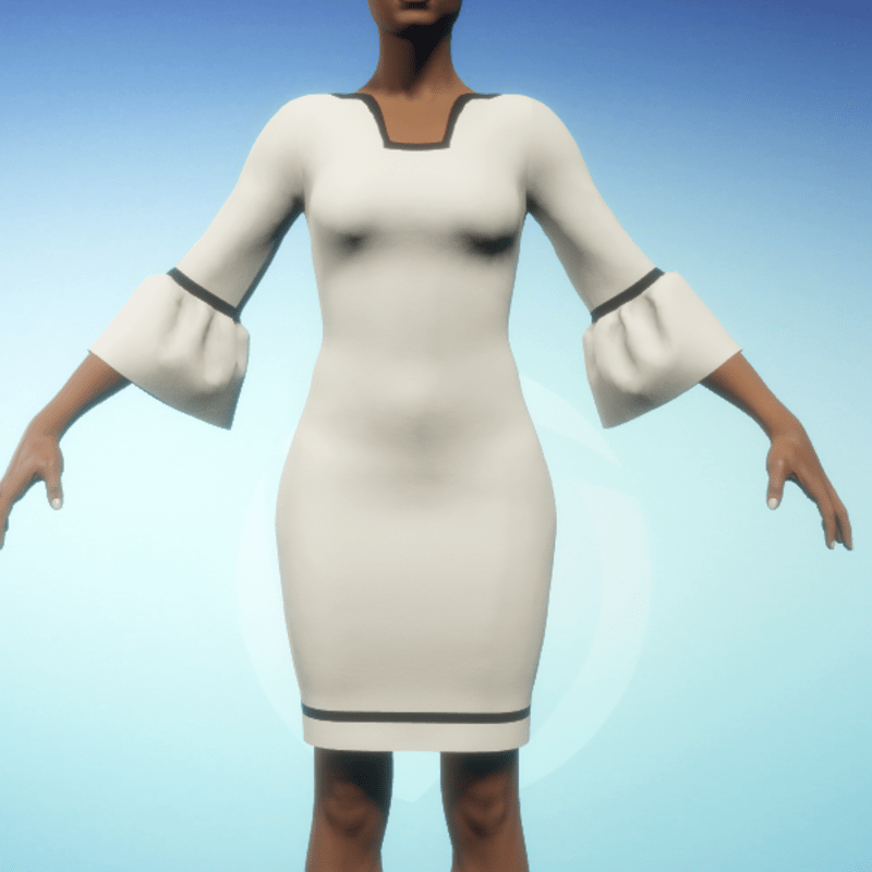 Bell-sleeve Dress - Cream and Black