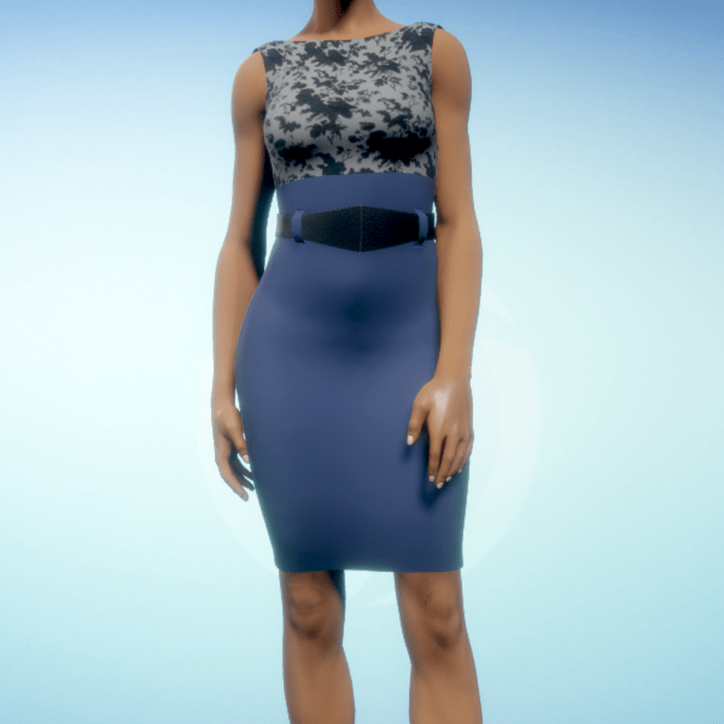Belted Dress - Blue and Black