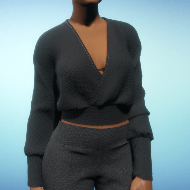Wrap Cropped Sweater - Black Chunky