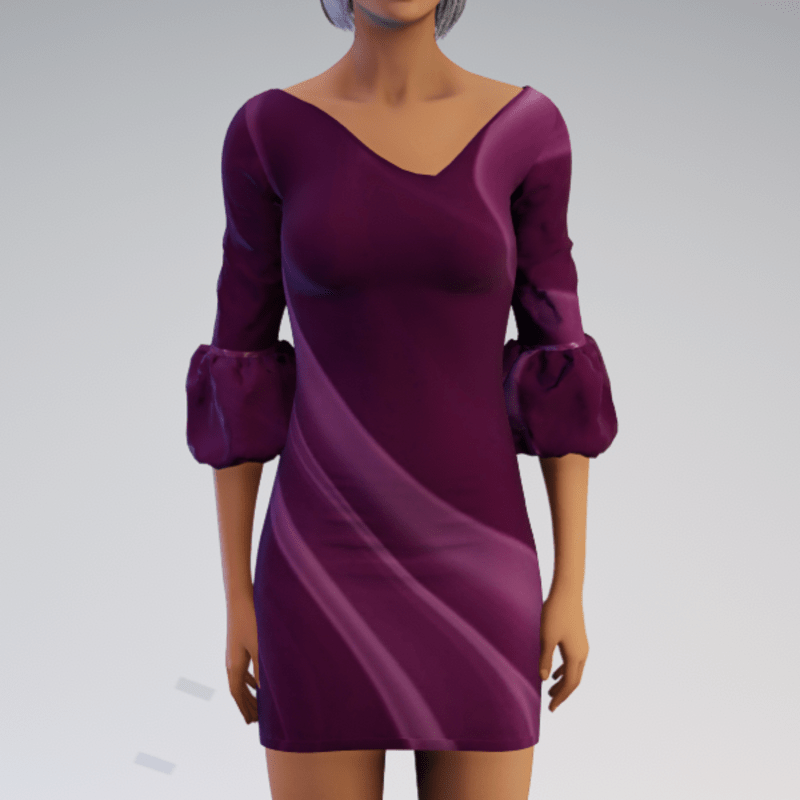 Bell-sleeve Dress - Vintage Flowers - Fushia
