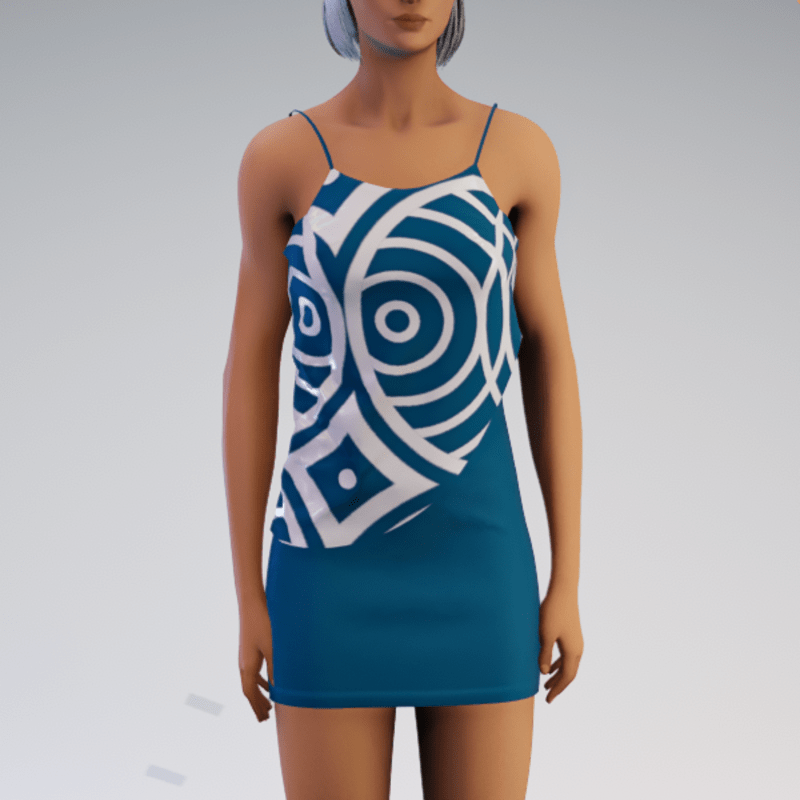 Layered Spaghetti Minidress - Teal and White Circles