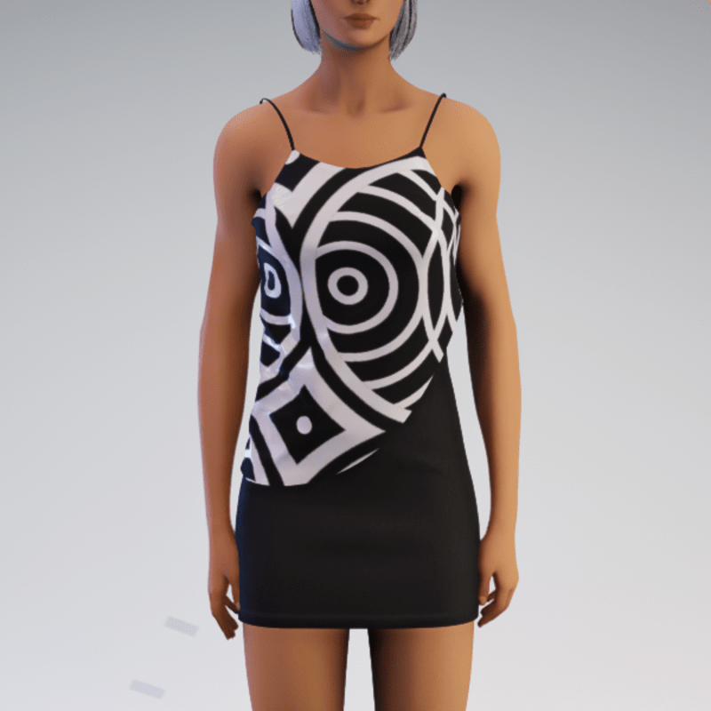 Layered Spaghetti Minidress - Black and White Circles