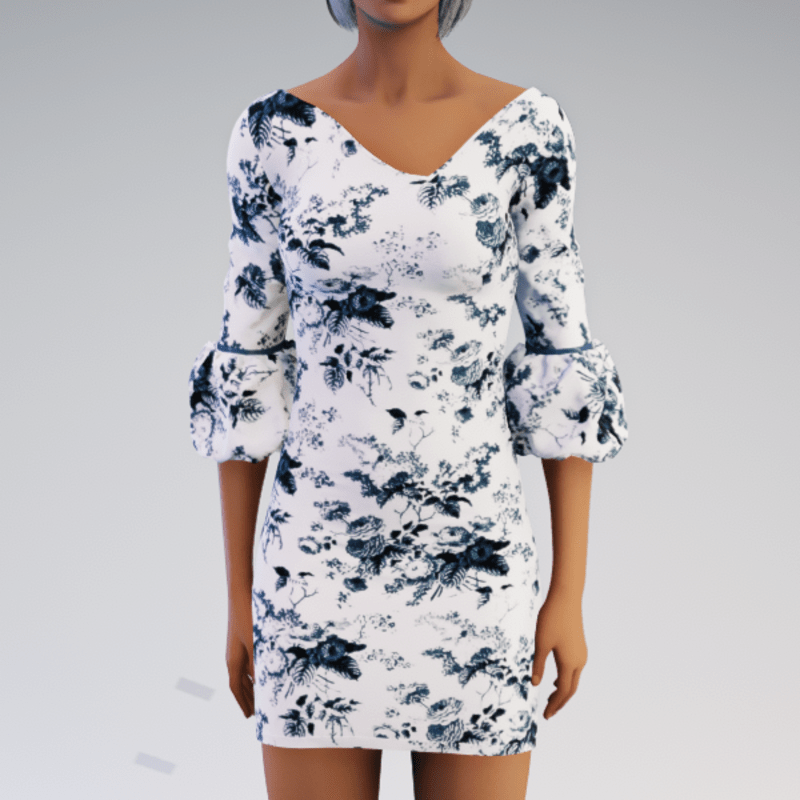 Bell-sleeve Dress - Vintage Flowers - Seafoam