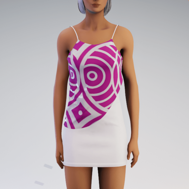 Layered Spaghetti Minidress - White and Fushia Circles