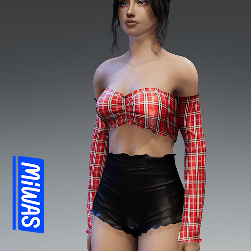 MIWAS/ Off shoulder Top #RedPlaid