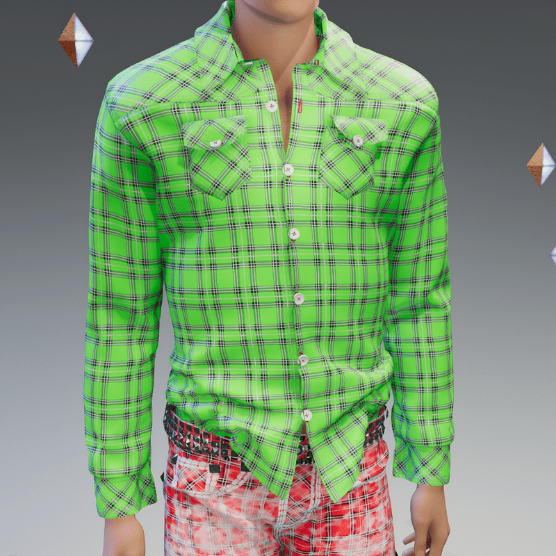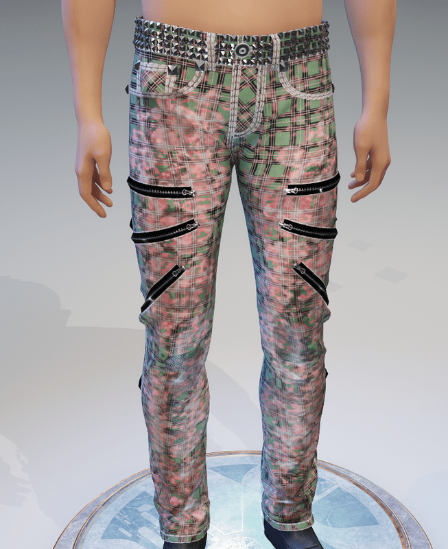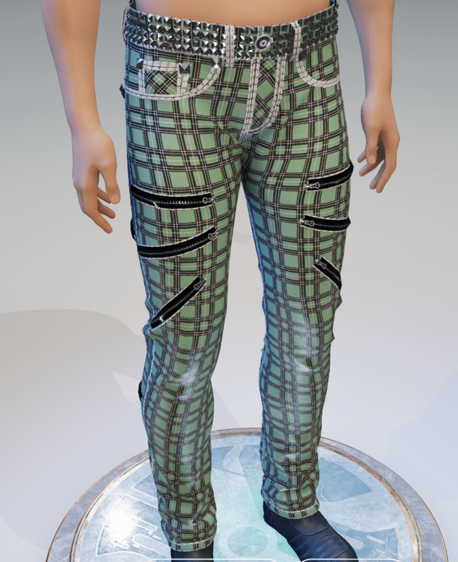 Punk Rock Chaos Green Plaid Dirt-Bleached Jeans - Male