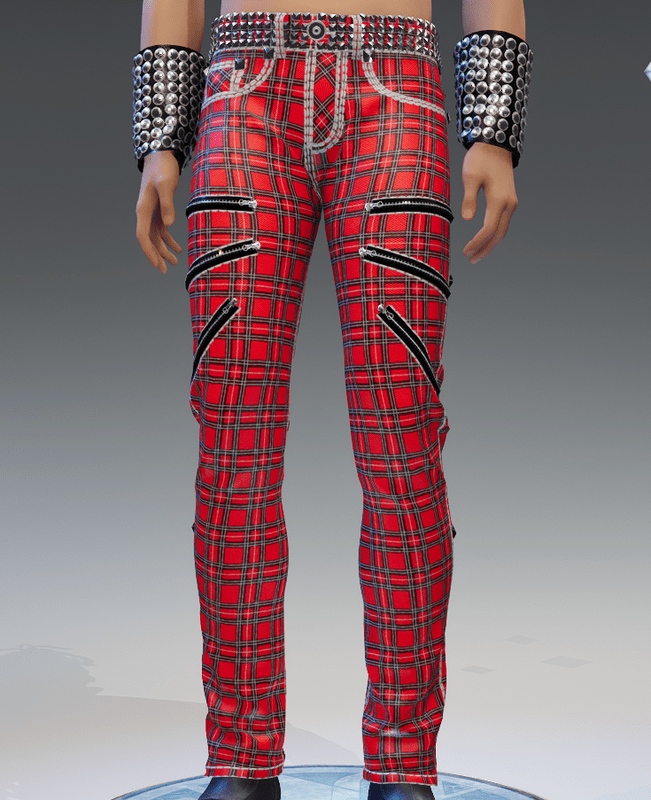 Punk Rock Chaos Red Plaid-Bleached Jeans - Male