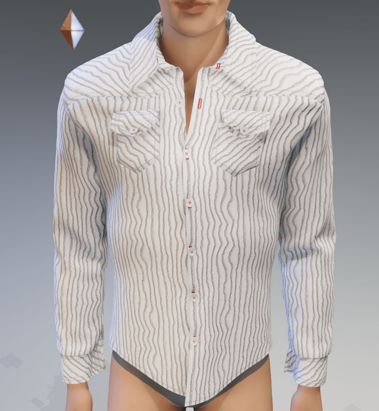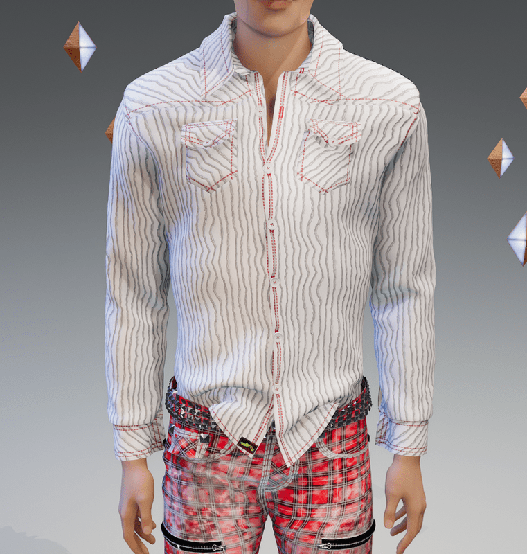White & Stripes Red Stitch Long Sleeves Shirt - Male