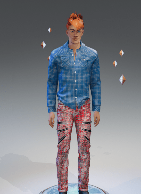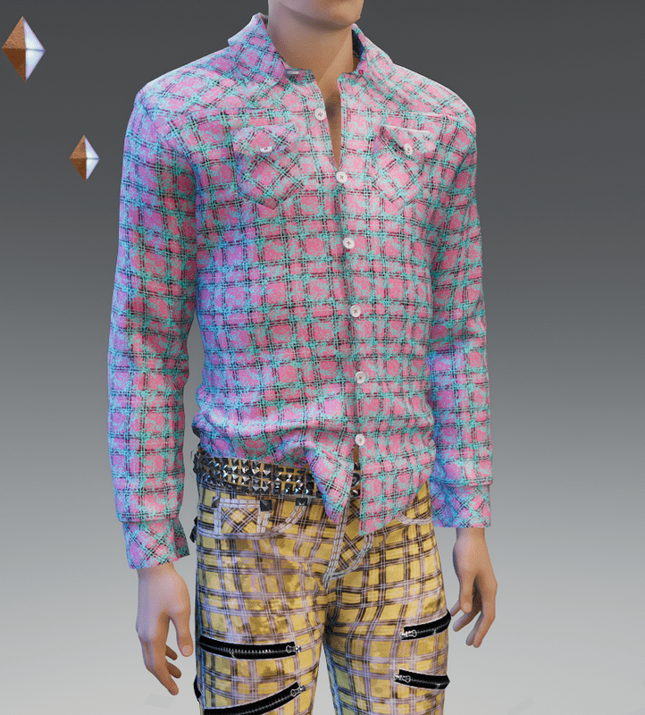 Punk Rock Chaos Blue Plaid Acid-Dirt-Bleached Jeans - Male