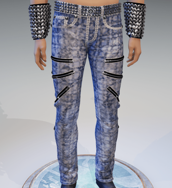 Punk Rock Chaos Blue Plaid-Bleached Jeans - Male