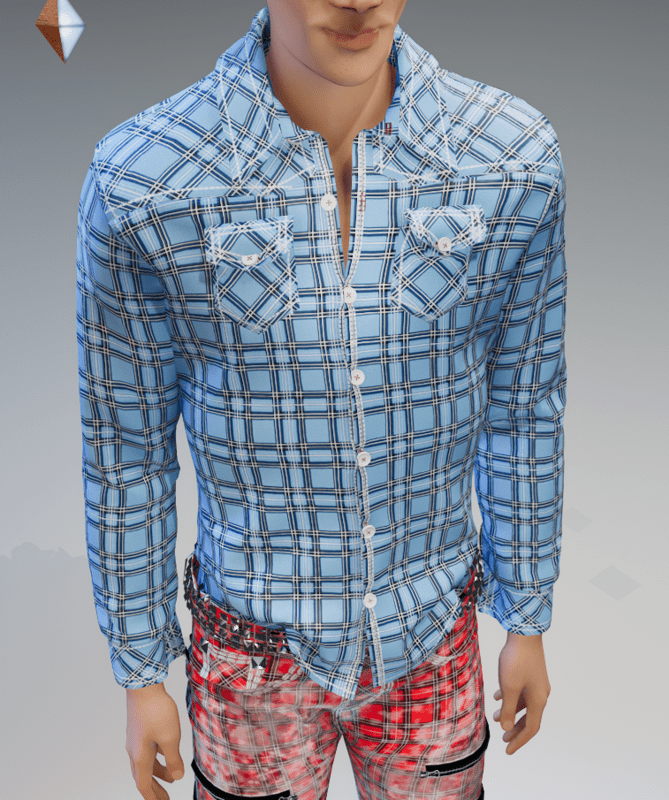Hyper Blue Plaid Long Sleeves Shirt - Male